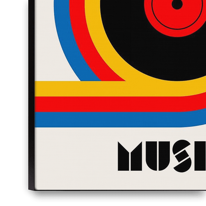 Bestelle dieses Art Deco-Wandbild Bauhaus Musik Vinyl von Retrodrome als Reproduktion auf Leinwand, Alu-Dibond, als Poster, Fototapete oder Acrylglasbild.