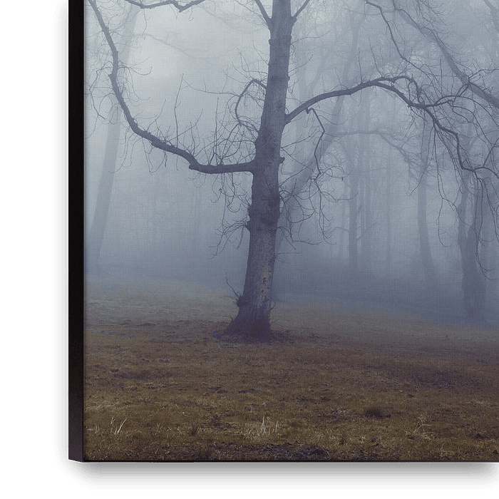 Bestelle dieses Landschafts-Wandbild Baumsilhouetten im Nebel von Dirk Wüstenhagen als Kunstdruck auf Leinwand, Alu-Dibond, als Poster, Fototapete oder Acrylglasbild.