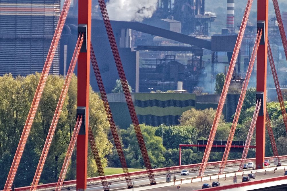 Die Beeckerwerther Brücke überspannt vor einer beeindruckenden Industriekulisse den Rhein zwischen den Duisburger Stadtteilen Beeckerwerth und Baerl.