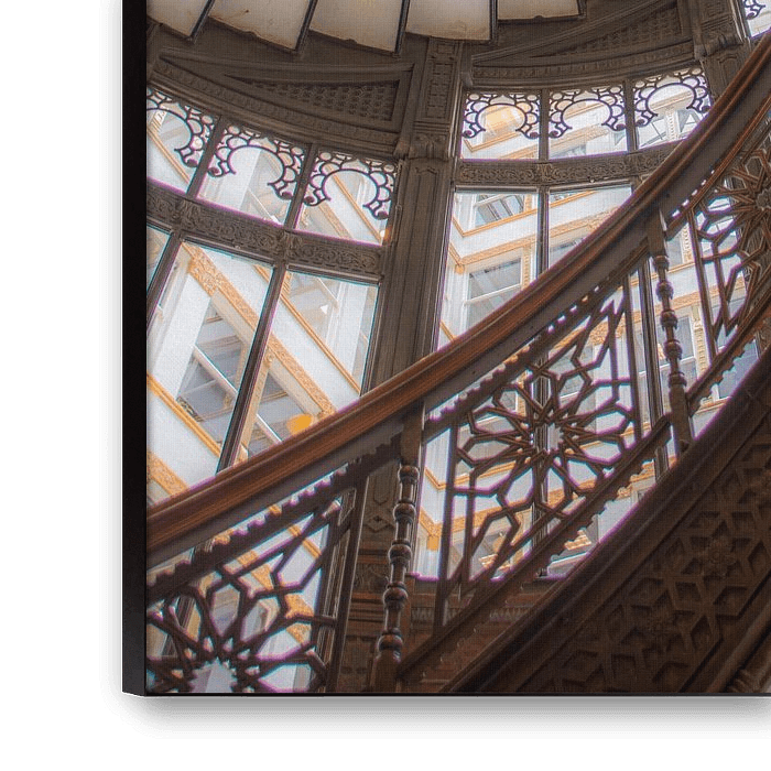 Deze foto werd gemaakt in de prachtige trapzaal van de Rookery Building (art deco), een gebouw in het centrum van Chicago van de bekende architect Frank Lloyd Wright.