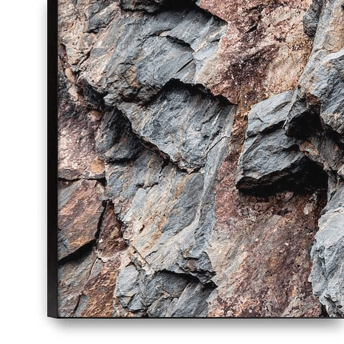 Bestelle dieses abstrakte Wandbild Bergklippe von Hanneke Luit als Reproduktion auf Leinwand, Alu-Dibond, als Poster, Fototapete oder Acrylglasbild.