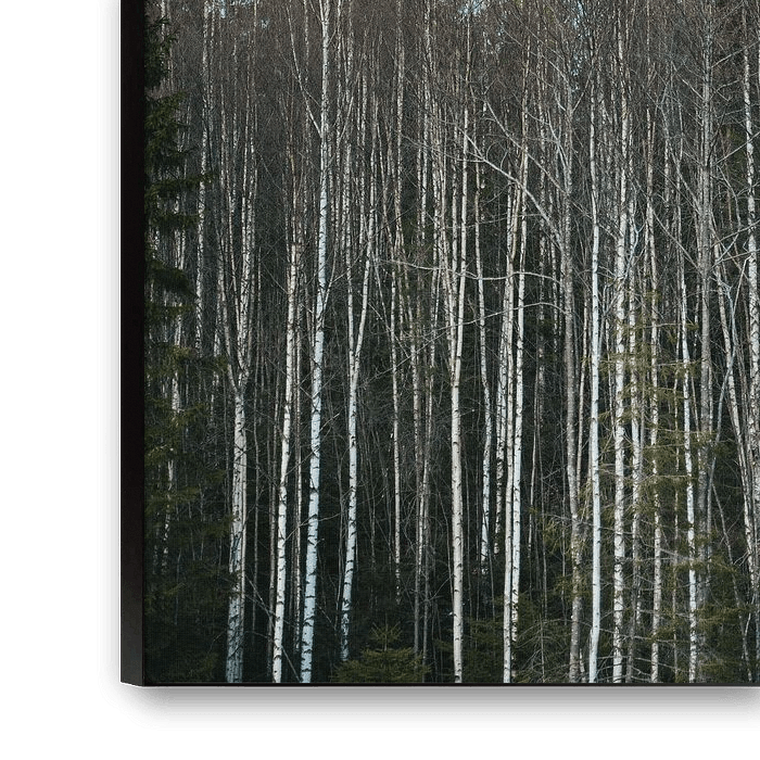 Diese Birken bei Sonnenuntergang ergaben für mich ein schönes Bild mit klaren Linien und auffälligen Farben. Die weißen Stämme heben sich als senkrechte Linien deutlich von dem dunklen Wald im Schatten ab.