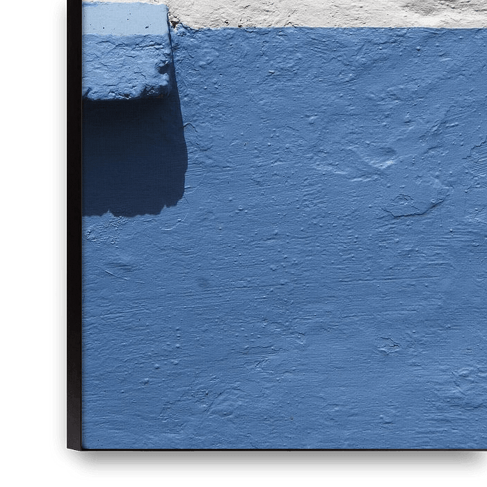 Bestelle dieses abstrakte Wandbild Blau-weiße Landhauswand von Western Exposure als Reproduktion auf Leinwand, Alu-Dibond, als Poster, Fototapete oder Acrylglasbild.
