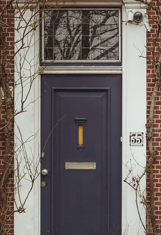 Poes sitzt vor einer typisch holländischen Haustür in Haarlem.