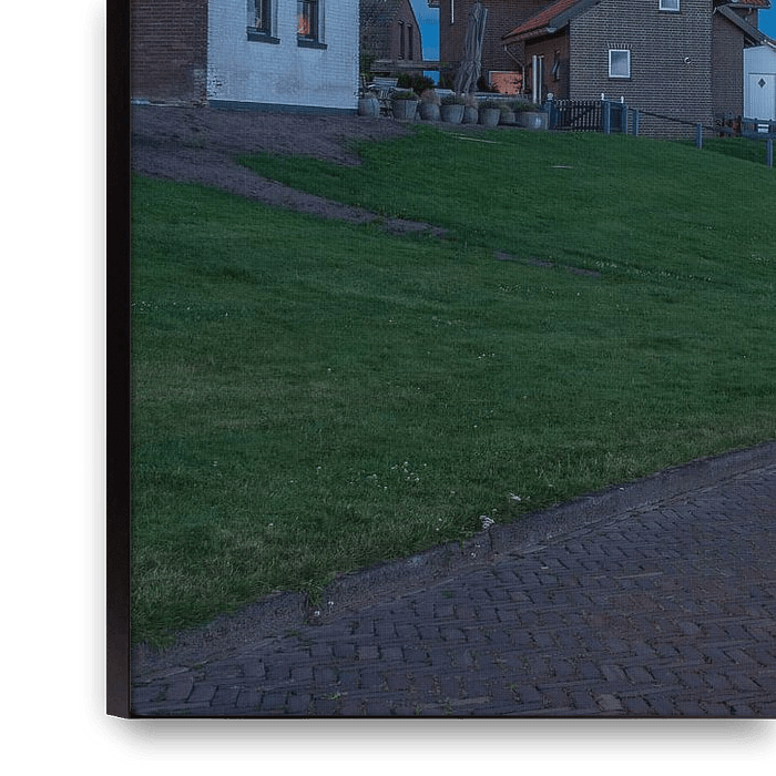 Bestelle dieses Landschafts-Wandbild Blaue Stunde am Leuchtturm von Urk (Flevoland) von Ardi Mulder als Reproduktion auf Leinwand, Alu-Dibond, als Poster, Fototapete oder Acrylglasbild.