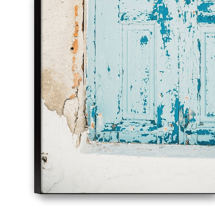 Ein alter blauer Fensterladen in einem Gebäude in Griechenland