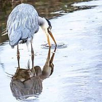 Dieser blaue Reiher ging stattlich durch das Wasser, während er nach einer guten Mahlzeit suchte. Plötzlich sah er einen Fisch schwimmen und er sah seinen Schnabel durch das Wasser, verpasste diesmal jedoch.