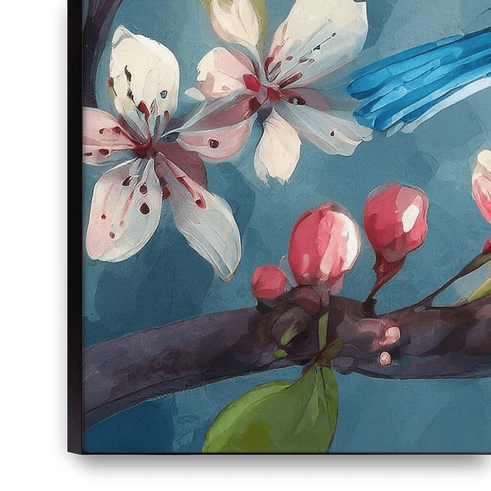Blauer Vogel auf einem Ast im Frühling, Kunstdesign