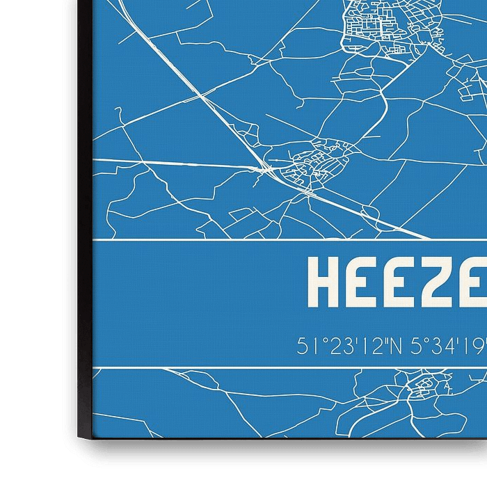 Blaupause der Karte / Karte der niederländischen Stadt Heeze, gelegen in der Gemeinde Heeze-Leende, Provinz Nordbrabant. Die Karte enthält alle öffentlichen Straßen und die Koordinaten des Zentrums von Heeze.