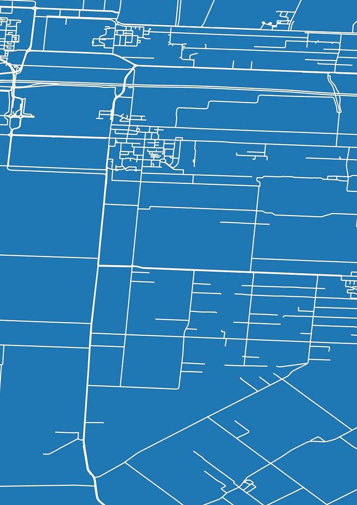 Blaupause der Karte / Karte der niederländischen Stadt Hollandscheveld, gelegen in der Gemeinde Hoogeveen, Provinz Drenthe. Die Karte enthält alle öffentlichen Straßen und die Koordinaten des Zentrums von Hollandscheveld.