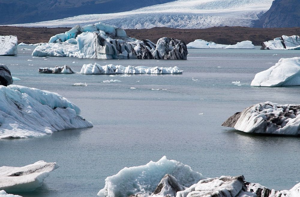 Het ijsmeer van IJsland Jokulsarlon, een uitloper van de gletsjer Vatnajokull komt uit in het meer en er breken grote ijssstukken af die in het meer komen en langzaam naar zee drijven