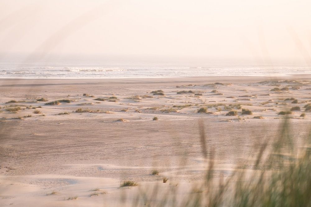 Der Sand ist noch kühl und Tautropfen hängen im Strandgras und warten darauf, dass die Sonne sie wieder verschwinden lässt.