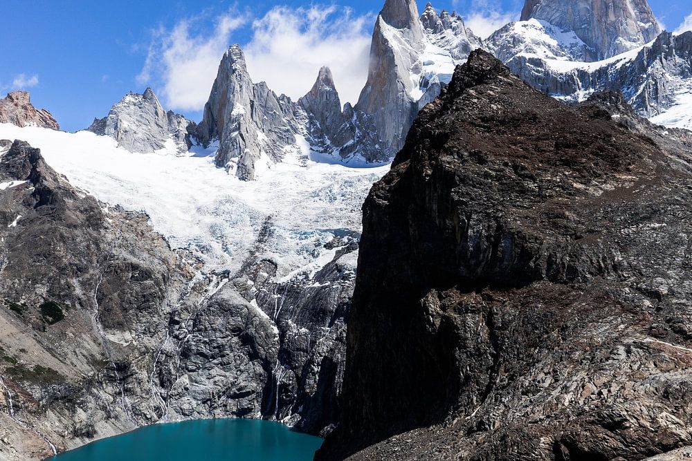 Blick auf die blauen Gebirgsseen am Fitz Roy Massiv in Argentinien