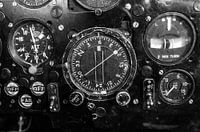 Blick auf eine Instrumentafel in einem historischen Flugzeug.