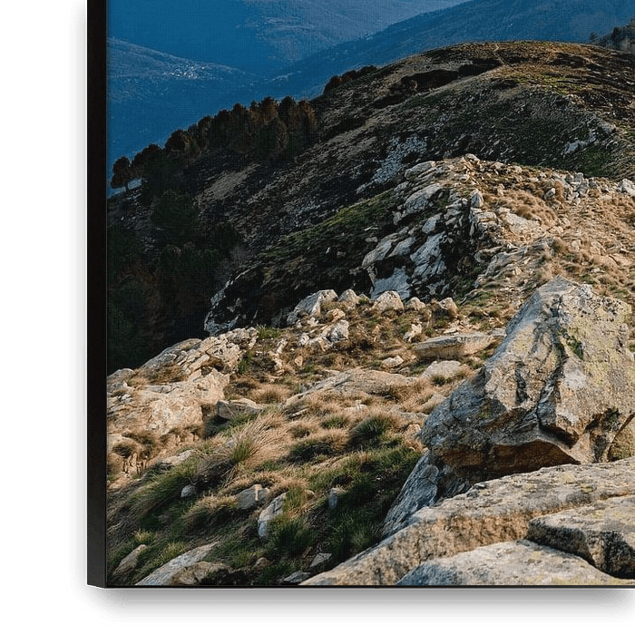 Ihre gewählte Kunst auf Leinwand, gespannt in einem Aluminiumrahmen. Schnell und einfach austauschbar für eine frische Ausstrahlung und ganz nach Ihren Wünschen.