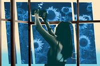 Fotografie, Collage und grafische Bearbeitung in Blau und Gelb.