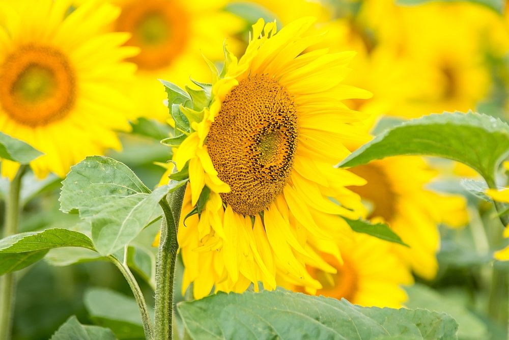 Schönes Feld mit Sonnenblumen auf der Veluwe.