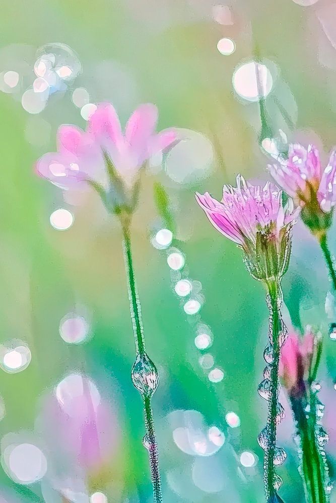 Sanfte Pastelltöne umspielen die filigranen Blüten, die von zauberhaften Wassertropfen umhüllt sind. Dieses Bild strahlt Frische und Lebensfreude aus und ist eine perfekte Ergänzung für das Schlafzimmer, wo es Harmonie und einen Hauch von Natur vermittelt. Die magische Atmosphäre lädt zum Träumen und Entspannen ein.
