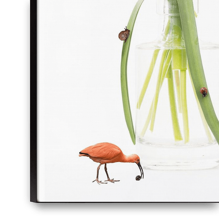 Bestelle dieses Vögel Wandbild Blumen-Fantasie von Klaartje Majoor als Reproduktion auf Leinwand, Alu-Dibond, als Poster, Fototapete, ArtFrame oder Acrylglasbild, maßgefertigt in höchster Qualität.