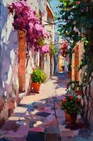 Bestelle dieses Blumen-Wandbild Blumenstraße Mediterran von Poster Art Shop als Reproduktion auf Leinwand, Alu-Dibond, als Poster, Fototapete oder Acrylglasbild.