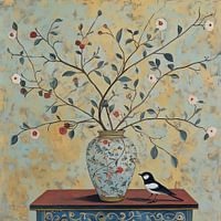 Blumenvase | Vase mit Vogel von Blickfänger Gemälde