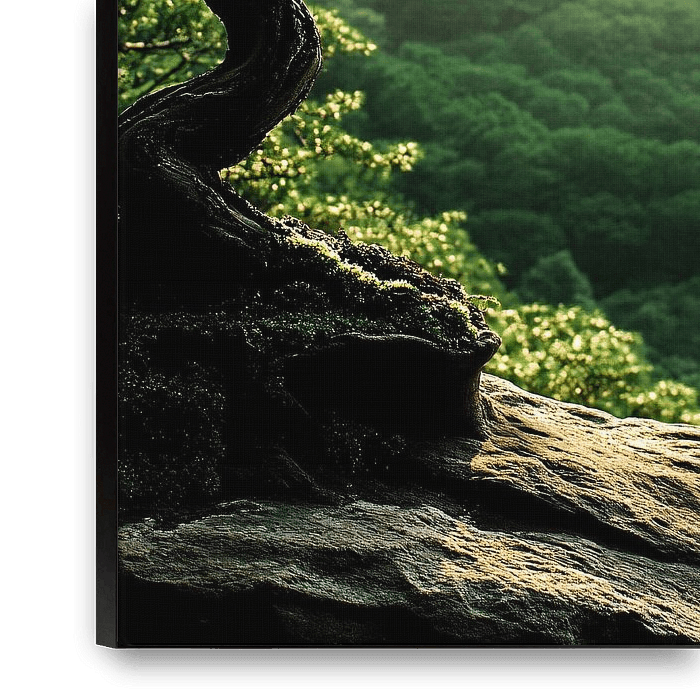 Bestelle dieses Landschafts-Wandbild Bonsai auf Felsen mit Landschaft von Art & Soul Creations als Reproduktion auf Leinwand, Alu-Dibond, als Poster, Fototapete oder Acrylglasbild.