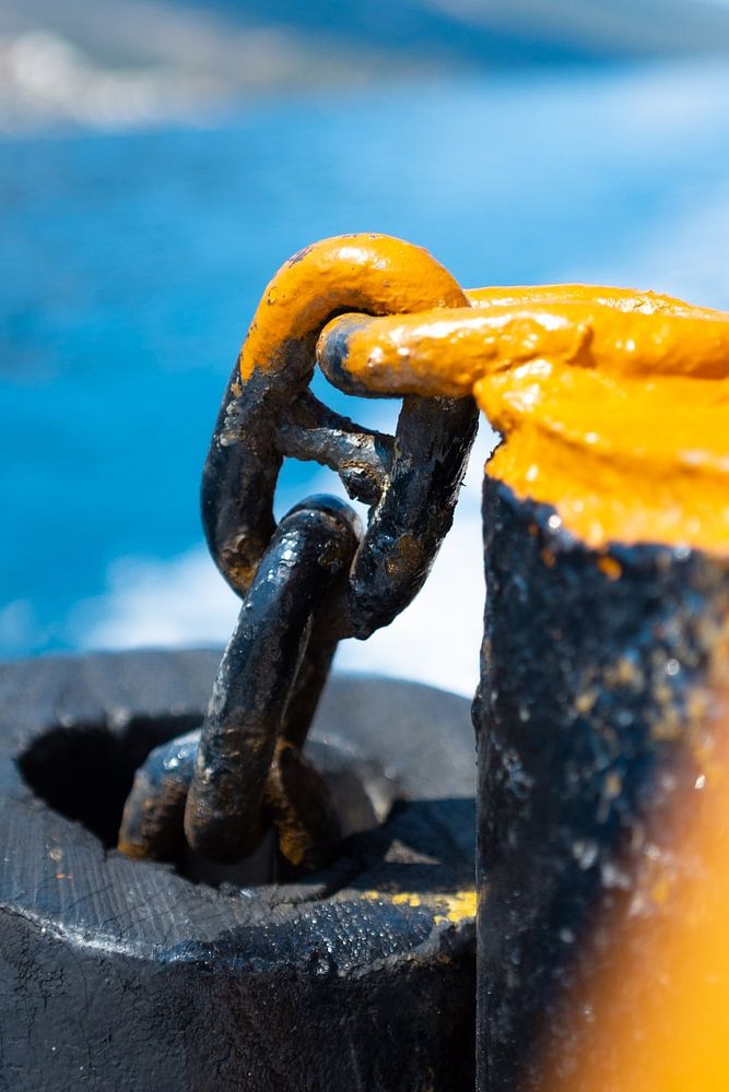 Dieses Bild zeigt die Kette eines Bootsankers.
