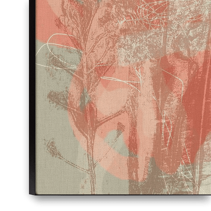 Bestelle dieses abstrakte Wandbild Botanische Kunst in pastellfarbenem Terra, Rosa, Weiß und Grau. Wiesenblumen-Monotypien. von Dina Dankers als Reproduktion auf Leinwand, Alu-Dibond, als Poster, Fototapete oder Acrylglasbild.