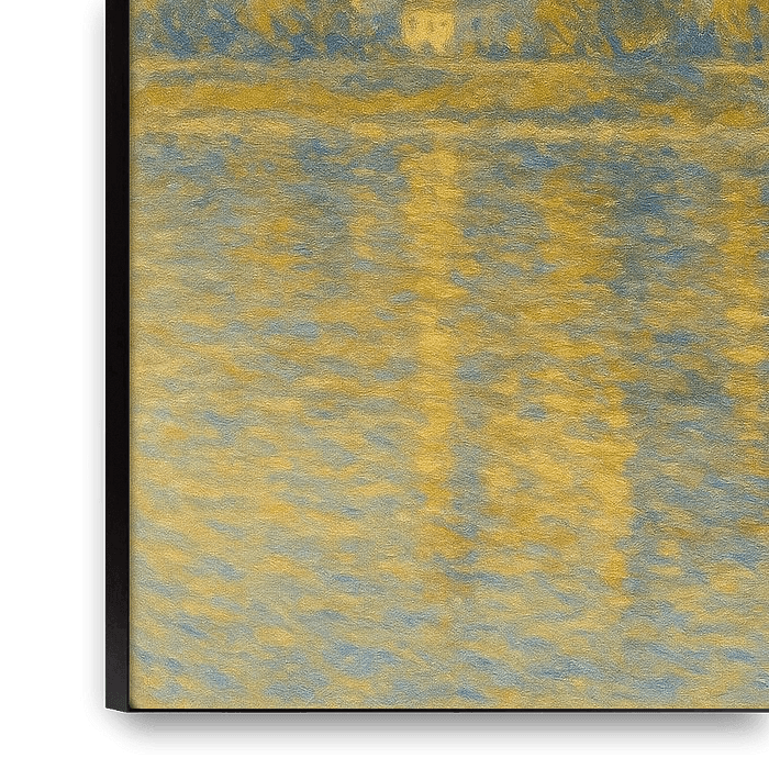 Im ersten Licht erhebt sich die Burg von Bratislava über der Donau wie eine Vision zwischen Geschichte und Traum. Der Künstler gibt die Festung in sanftem Gold und blassem Azur wieder, ihr Spiegelbild erstreckt sich sanft über das ruhige Wasser. In Anlehnung an Claude Monets frühe Flussszenen vermittelt der Pinselstrich mehr Atmosphäre…