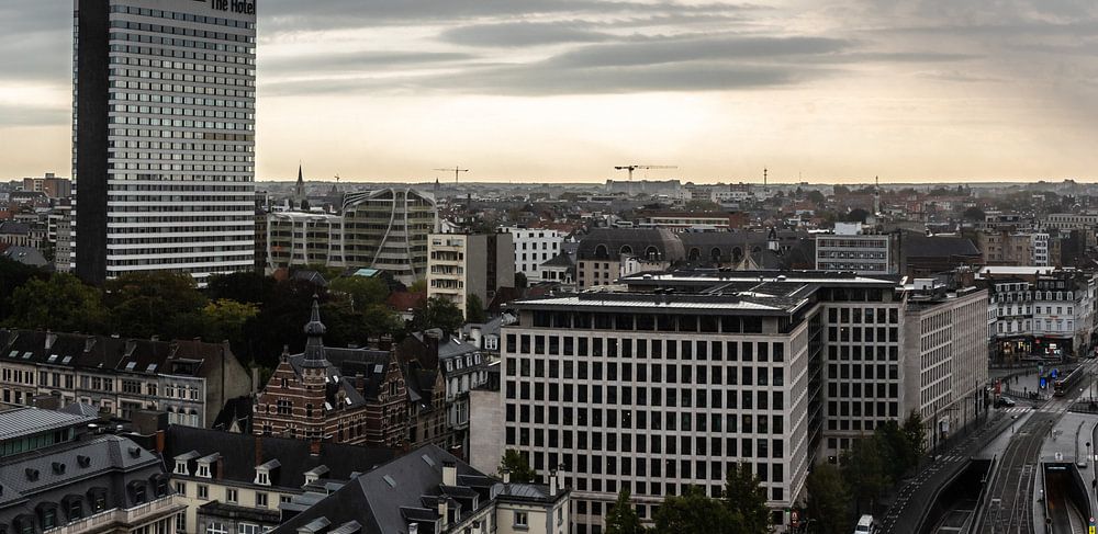 Schöne Aussicht auf den geschäftigen Verkehr um Poelaert und Louise, fotografiert von einem Riesenrad aus.
