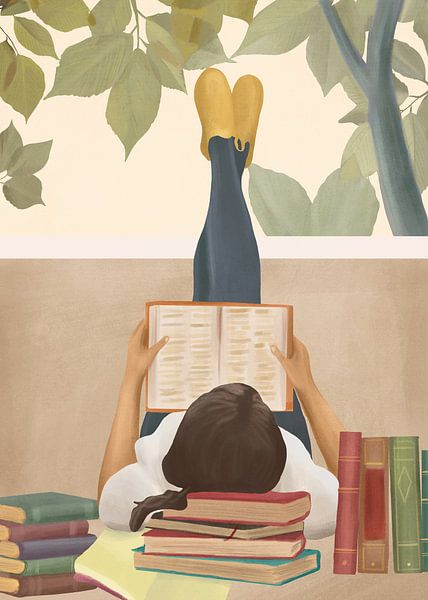 Bestelle diese Malerei Bücherwurm von Branka Kodžoman als Kunstdruck auf Leinwand, Alu-Dibond, als Poster, Fototapete oder Acrylglasbild.