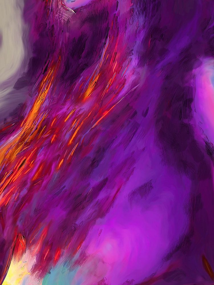 Ein abstraktes und farbenfrohes Porträt einer jungen Frau mit langen roten Haaren. Aufgrund der vielen kleinen Details eignet sich dieses Werk besonders gut für den Druck im Großformat.