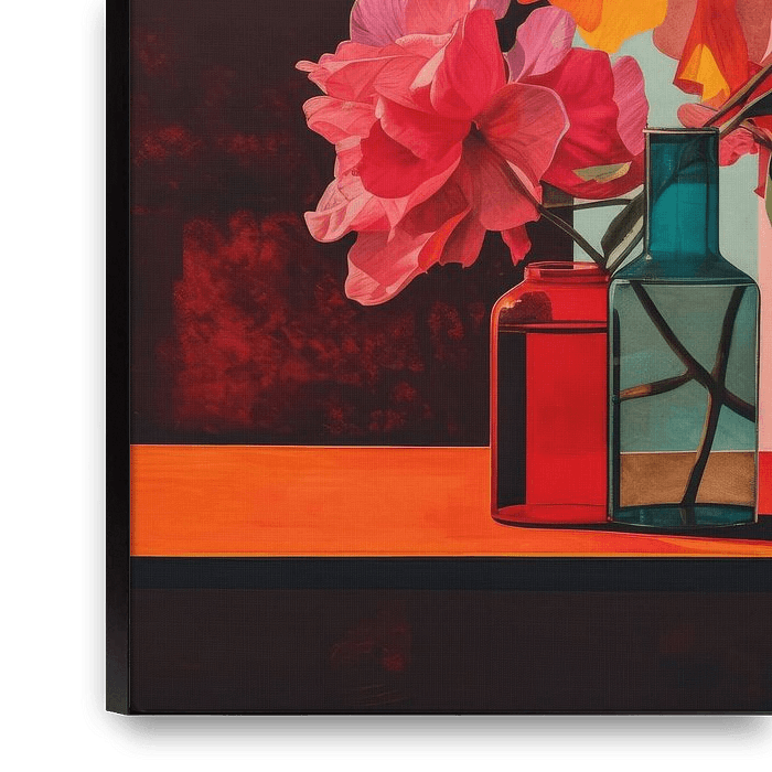 Bunte Blumen in einer Vase. Ein ungewöhnliches und kontrastreiches Werk. Wählen Sie die Maße und das Material selbst und passen Sie dieses Werk an Ihr Interieur an.