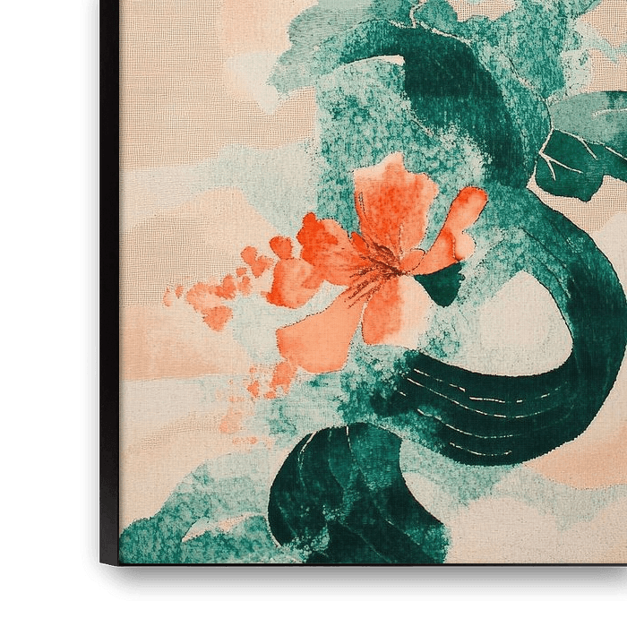 Ein zauberhaftes Spiel aus lebendigen roten Blüten und sanften grünen Blättern entfaltet sich in harmonischen Fließbewegungen. Diese blühende Komposition bringt Frische und Lebensfreude in jeden Raum. Ideal für die Küche, zaubert sie eine einladende Atmosphäre und inspiriert zu geselligen Momenten und kulinarischen Abenteuern.
