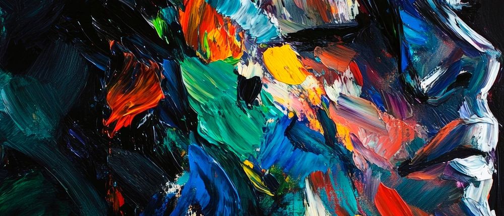 Ein faszinierendes Spiel aus Farben und Formen entfaltet sich in einem lebhaften Porträt, das die emotionale Tiefe und Kreativität einfängt. Die strahlenden Farbtupfer umschmeicheln das Gesicht, während die dunkle Hintergrundfläche intensiver wirkt. Ideal für ein Wohnzimmer oder Kreativzimmer, wo die Energie und Inspiration sprießen können.