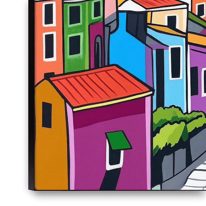 Bestelle dieses Landschafts-Wandbild Bunte Küstenansicht von Poster Art Shop als Reproduktion auf Leinwand, Alu-Dibond, als Poster, Fototapete oder Acrylglasbild.