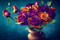 Bestelle diese Illustration Bunte Rosen Gemälde in einer Vase Illustration von Animaflora PicsStock als Kunstdruck auf Leinwand, Alu-Dibond, als Poster, Fototapete oder Acrylglasbild.