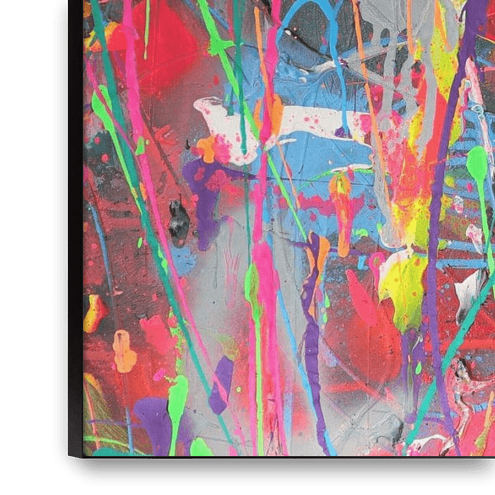 Bestelle dieses abstrakte Wandbild Bunte abstrakte Pollock-Tropfen von SpeelseKunst als Reproduktion auf Leinwand, Alu-Dibond, als Poster, Fototapete oder Acrylglasbild.