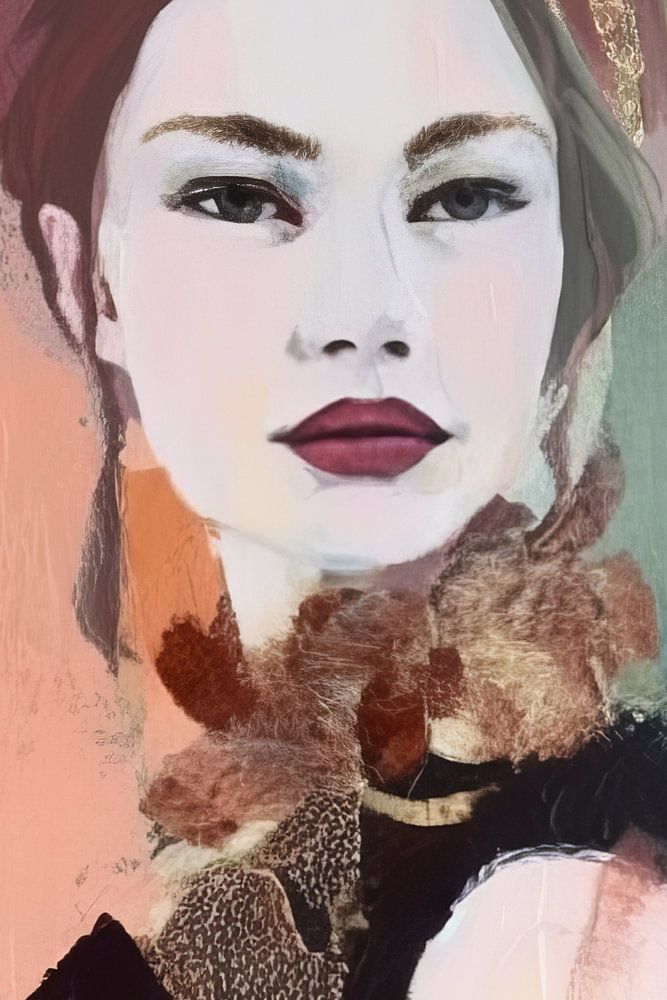 Buntes Porträt einer jungen Frau in Pastellfarben, durchsetzt mit wärmeren Farben als Kontrast. Modern und farbenfroh.