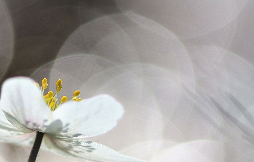 Schönes Bild mit Buschwindröschen in der Nähe des Wassers aufgenommen. Dadurch erhalten Sie ein schönes Bokeh. Das Ganze ist stimmungsvoll
