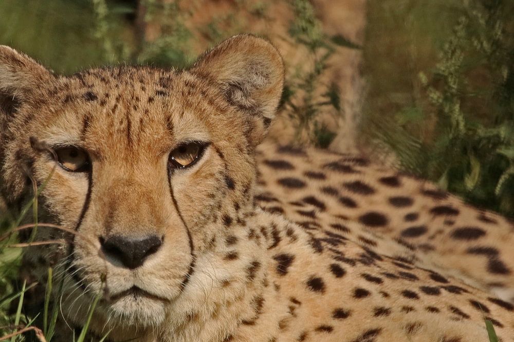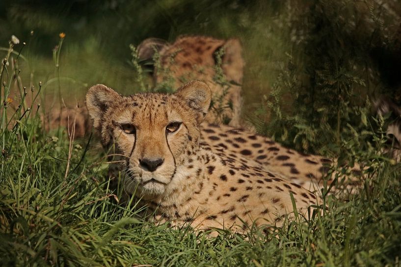 Diese 2 Geparden genossen es, sich im hohen Gras ihres großen Geheges umzusehen.