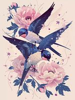 Bestelle dieses Vögel Wandbild Chinesische Vögel mit Pfingstrosen von haroulita als Reproduktion auf Leinwand, Alu-Dibond, als Poster, Fototapete, ArtFrame oder Acrylglasbild, maßgefertigt in höchster Qualität.