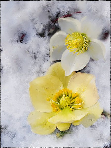 Bestelle dieses Blumen-Wandbild Christrose im Schnee von Christine Nöhmeier als Reproduktion auf Leinwand, Alu-Dibond, als Poster, Fototapete oder Acrylglasbild.