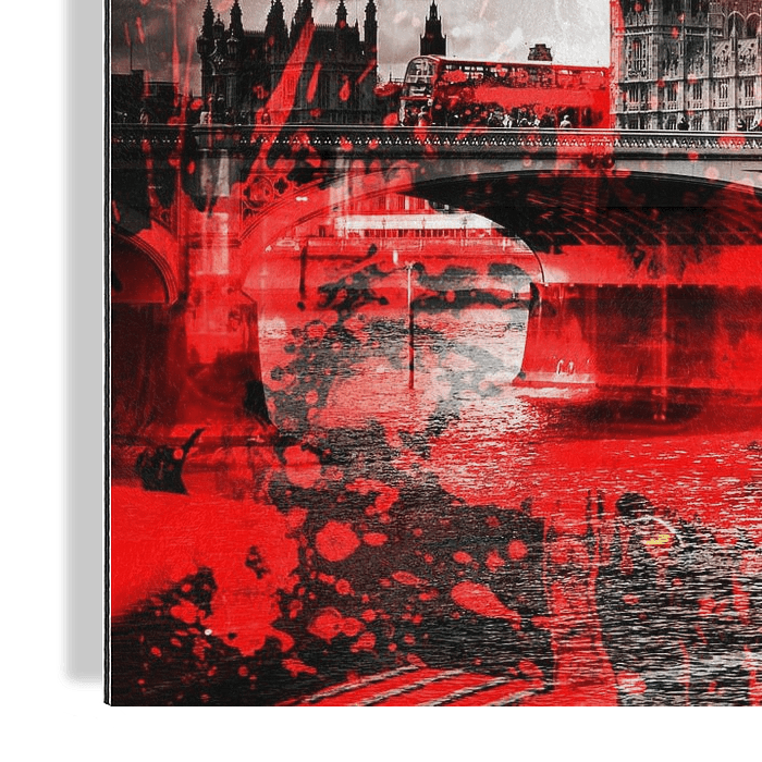 Bestelle dieses moderne Wandbild City-Art LONDON Red Bus Composing von Melanie Viola als Reproduktion auf Leinwand, Alu-Dibond, als Poster, Fototapete oder Acrylglasbild.