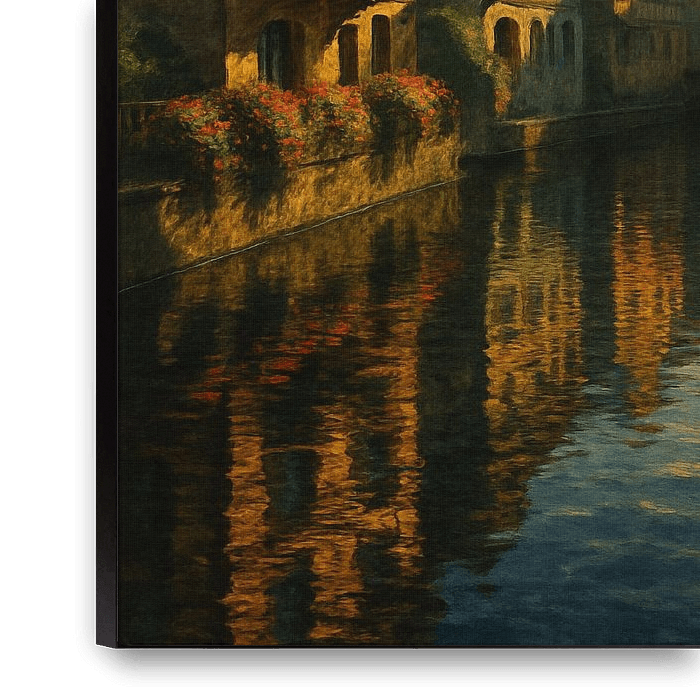 Colmar Reflections zelebriert die märchenhafte Schönheit des Elsass zur goldenen Stunde. Fachwerkhäuser in warmen Ocker- und Kastanientönen erheben sich über einem gläsernen Kanal, in dem sich ihre leuchtenden Fassaden spiegeln. Aus den Blumenkästen quellen die Blumen wie kleine Farbfeuer, und jede Spiegelung schimmert sanft in der…