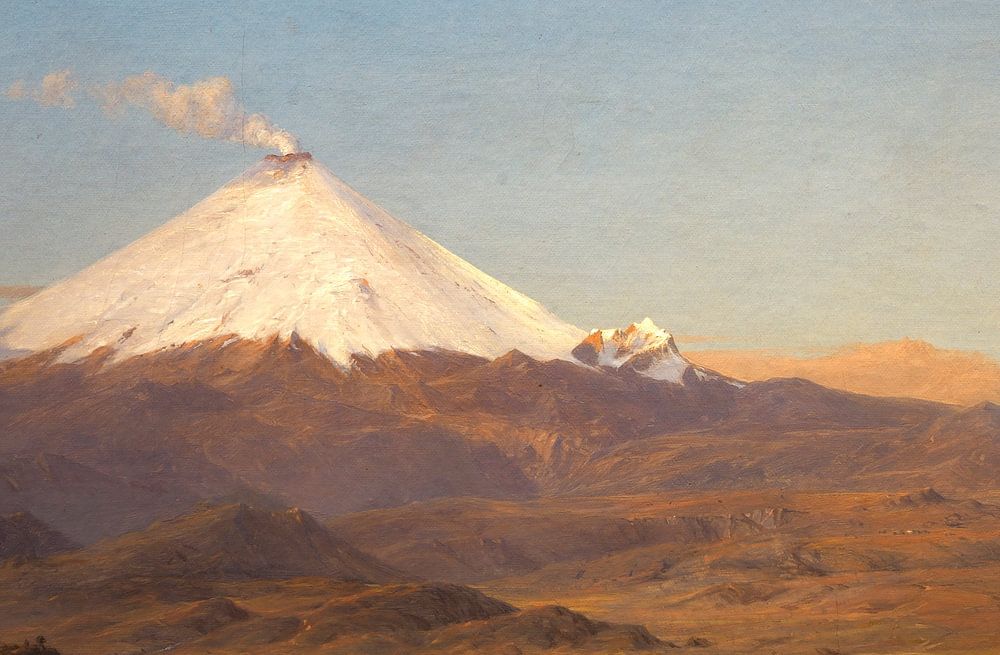 Frederic Church war ein ambitionierter Maler und begeisterter Amateurwissenschaftler. Er hatte Darwins Bücher und Alexander von Humboldts Beschreibungen des Cotopaxi gelesen, des furchtbarsten Vulkans, dessen Explosionen am häufigsten und katastrophalsten sind. Der sagenumwobene Berg in Ecuador war sowohl ein poetisches Symbol für Gottes Schöpfung als auch ein aufregendes Fenster in die Naturgeschichte des Planeten. Jahrhundert war die Geologie eine neue Wissenschaft, und Church gehörte zu denjenigen, die glaubten, dass Vulkane Aufschluss über das Alter und die Entstehung der Erde geben würden. Bei seinem ersten Besuch in Ecuador wartete der Künstler einen ganzen Tag lang in der Nähe der hier abgebildeten Hazienda, in der Hoffnung, dass die Wolken aufbrechen und den Gipfel freigeben würden. Amerikanische Kritiker beschwerten sich, dass Churchs Bilder des Vulkans nicht den weichen atmosphärischen Dunst einfingen, den sie von Landschaften gewohnt waren. Diejenigen, die noch nie in das Hochland der Anden gereist waren, verstanden nicht, dass die eisigen Flanken des Cotopaxi in der dünnen, klaren Luft genauso schimmerten, wie Church sie gemalt hatte.