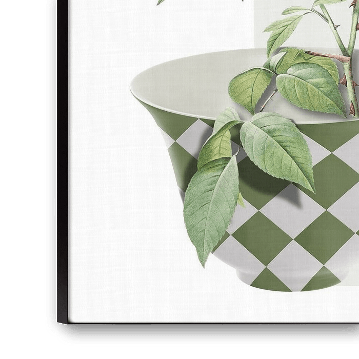 Digital gefertigte, romantische Collage aus verschiedenen Bildern, viel Grün und Rosa und ein bisschen Gold in diesem Kunstwerk, das Sie hoffentlich glücklich macht (ich tue es nämlich).