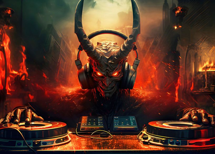 Bestelle das digitale Kunst Bild Dämonen-DJ von Rudi Arto als Reproduktion auf Leinwand, Alu-Dibond, als Poster, Fototapete oder Acrylglasbild.