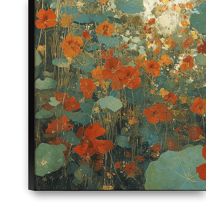 Bestelle diese Malerei Dame im Kapuzinerkressegarten Nr. 1 von Studio BB als Reproduktion auf Leinwand, Alu-Dibond, als Poster, Fototapete oder Acrylglasbild.