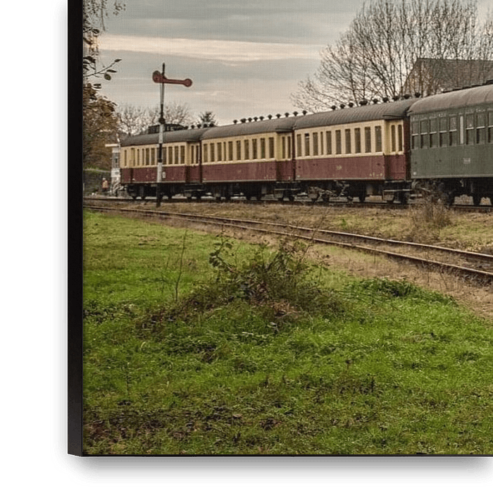 Bestelle dieses Stilleben Dampfzug Simpelveld von John Kreukniet als Reproduktion auf Leinwand, Alu-Dibond, als Poster, Fototapete oder Acrylglasbild.